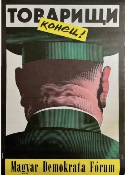 A rendszerváltás egyik legmeghatározóbb vizuális szimbóluma most kézzelfogható formában válik elérhetővé: Orosz István legendás „Tovarisi, konyec!” plakátja, amely egész Kelet-Európában a szabadság és a függetlenség jelképévé nőtte ki magát. A Magyar Demokrata Fórum számára készült mű nemcsak a hazai politikai átalakulás ikonja, hanem olyan nemzetközi visszhangot váltott ki, hogy még az amerikai Time magazin is közölte.